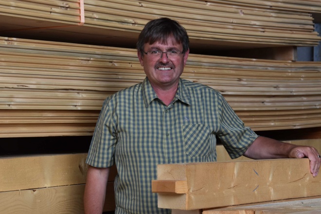 Den Duft von geschnittenem Holz kennt Dominik Blatti seit Kindsbeinen. Sein Grossvater legte 1957 den Grundstein für den Familienbetrieb. Nach der Lehre zum Zimmermann bildete sich Dominik an der Holzfachschule in Biel weiter. Er arbeitete einige Jahre in der Region Thun, bevor er ins elterliche Unternehmen zurückkehrte. 24-jährig wurde der Holzfachmann von seinem Vater Hanspeter Schritt für Schritt auf die Übernahme vorbereitet. Die langjährige Praxis hat den heute 56-Jährigen viel gelehrt: «Alles kann man sich nicht auswärts holen, man muss die Theorie den Voraussetzungen des eigenen Betriebs, der Region und der Kundschaft anpassen.»