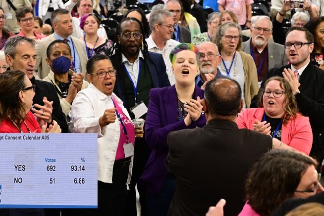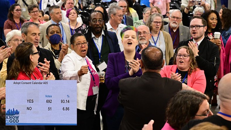 Demnach hat die Generalkonferenz ohne Debatte im Plenum das bisher geltende Verbot aufgehoben, Personen zu ordinieren, die «bekennende praktizierende Homosexuelle» sind. Die Delegierten an der Generalkonferenz in Charlotte, North Carolina/USA, hätten während der Plenarsitzung am Vormittag des 1. Mai dieser Änderung im Rahmen des «Konsenskalenders» zusammen mit einem Paket von 22 weiteren Regelungen zugestimmt. Dieses Verfahren ermögliche es, im Verlauf des parlamentarischen Verfahrens mehrere Vorlagen und Beschlussanträge gemeinsam zu verabschieden, ohne dass darüber diskutiert werde. Voraussetzung dafür sei, dass solche Konsensvorlagen vom entsprechenden Ausschuss eine überwältigende Zustimmung erhielten und keine Auswirkungen auf den Haushalt oder die Verfassung hätten, so die EMK. Die Zustimmung zur Abschaffung des Ordnungsparagrafen sei bei 93 Prozent gelegen (692 : 51 Stimmen).