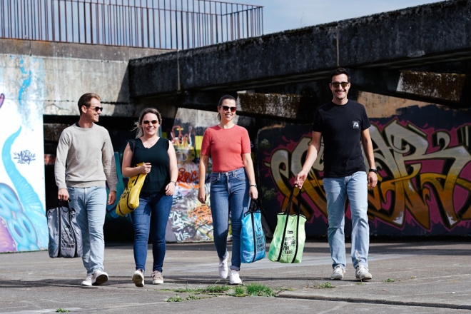 Jede Tasche wurde aus wiederverwerteten Fallschirmen produziert – gesammelt bei Schweizer Fallschirmspringern und Fallschirmschulen. Das macht die Taschen robust, leicht und nachhaltig. Zudem machen drei von der Community gewählte Slogans die Taschen zu kreativen Gesprächsstartern. Die Einnahmen unterstützen das Ausbildungs- und Integrationsprogramm von glowbalact für Betroffene von Menschenhandel und für Menschen, die aus unfreiwilliger Prostitution aussteigen. Die Taschen sind allerdings nur erhältlich, solange der Vorrat reicht.
