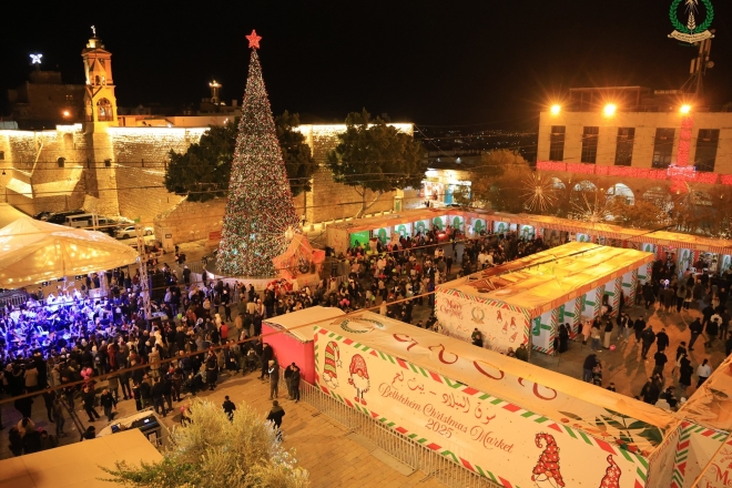 Hoffnungsvolle Lichter am Weihnachtsmarkt in Bethlehem