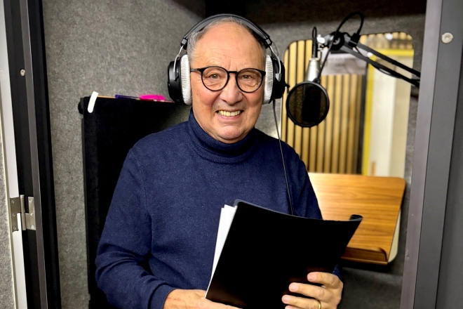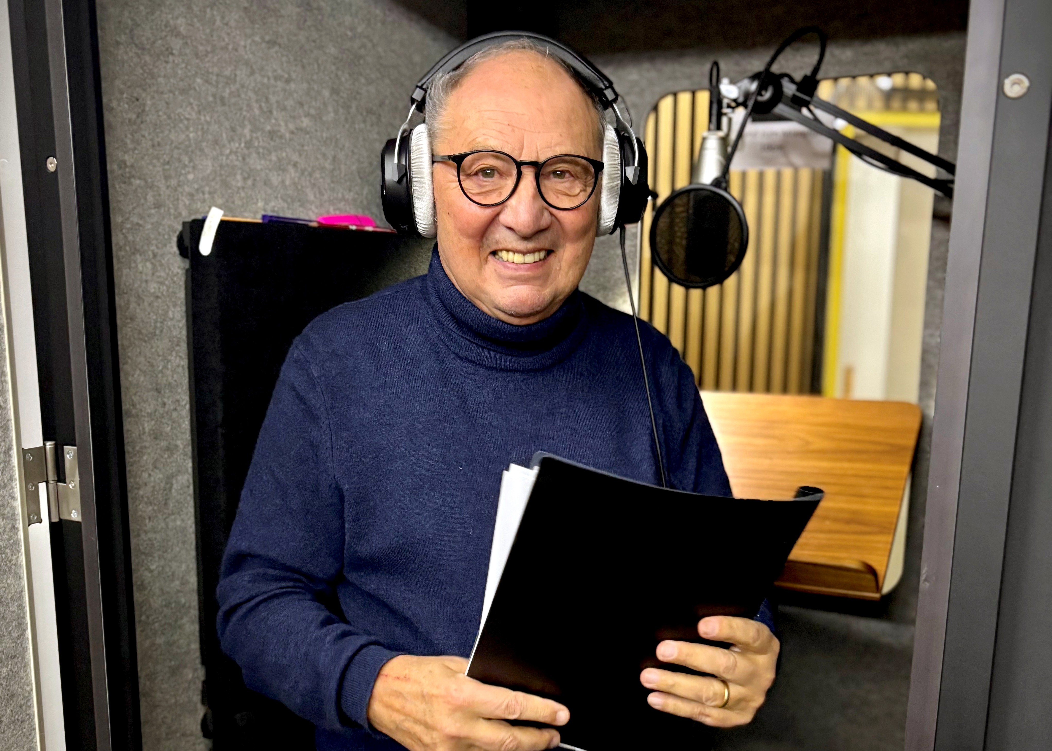 Beni Thurnheer bei den Hörspielaufnahmen im Adonia-Tonstudio
