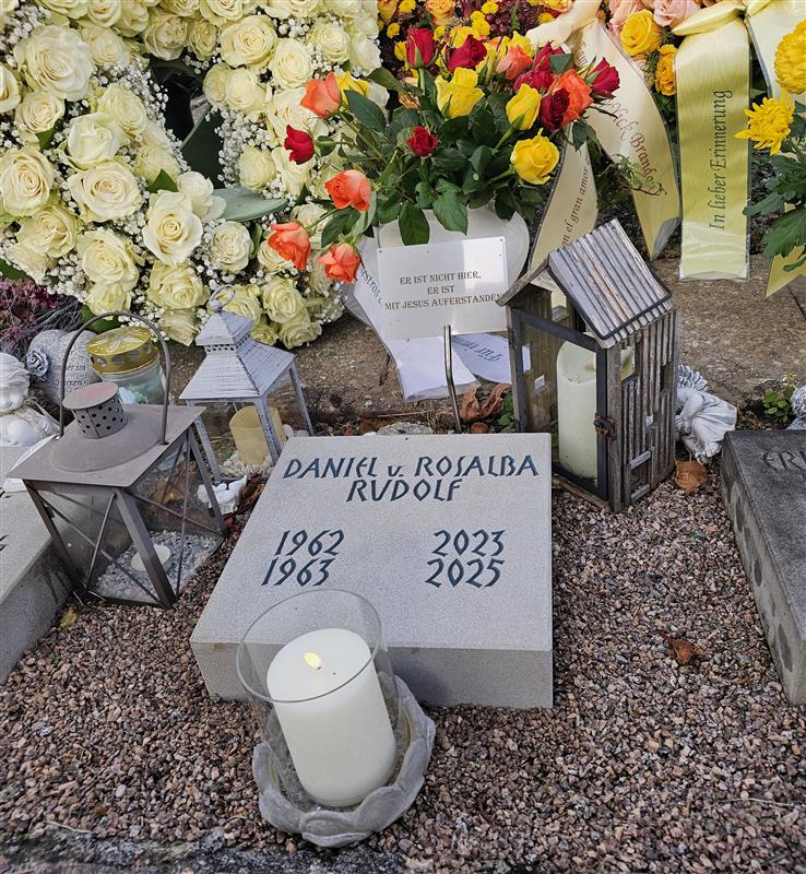 Die Urne war am Morgen des 31. Oktobers 2025 im engsten Familienkreis im Vorgarten der Katholischen Kirche in Tägerig beigesetzt worden – an Ort und Stelle, wo zwei Jahre zuvor Rosalbas Ehemann, der Fahrlehrer Daniel Rudolf, seine letzte Ruhestätte gefunden hatte. Auch der 61-Jährige starb an Krebs.